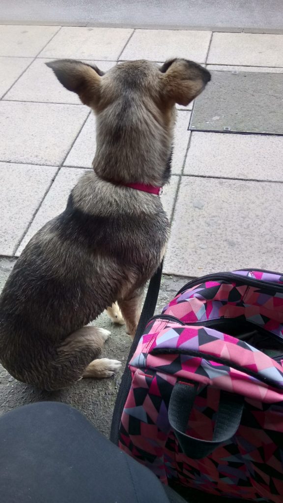 Various women now began pulling treats from various concealed locations on their bodies. Out came bone shaped biscuits from pockets and lumps of chicken from sleeves – one even reached down her shirt and produced a dried up lump of black pudding in a triumphant flourish and waved it hopefully under the dog’s nose.